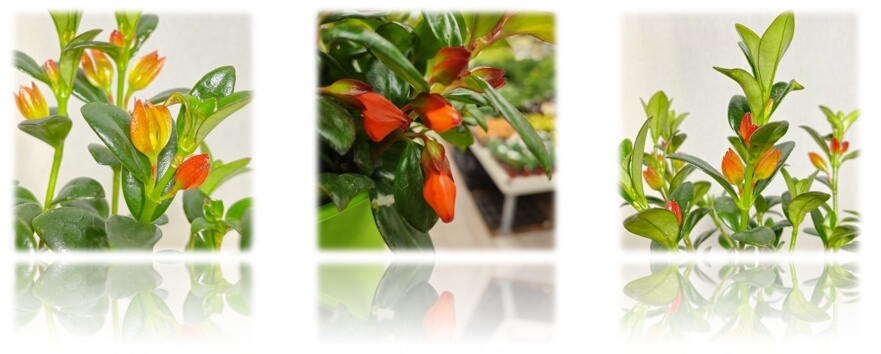 금붕어 또는 복어처럼 배가 불룩한 모양의 주황색 꽃이 특징인 식물이 네마탄투스입니다.