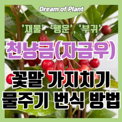 천냥금은 빛이 적은 곳에서도 잘 자라고 관리하기 까다롭지 않아 초보 식집사에게도 추천하는 식물입니다. 기본적인 물 주기와 햇빛 관리만 잘해주시면, 여름엔 예쁜 하얀 꽃을, 가을과 겨울엔 사랑스러운 빨간 열매를 감상할 수 있을 것입니다. 재물운까지 불러온다고 하니, 우리 집 작은 행운의 상징으로 천냥금 한 화분 어떠세요? 여러분의 천냥금이 건강하게 자라서 예쁜 열매를 많이 맺기를 바라겠습니다! 이상, Dream of Plant였습니다.